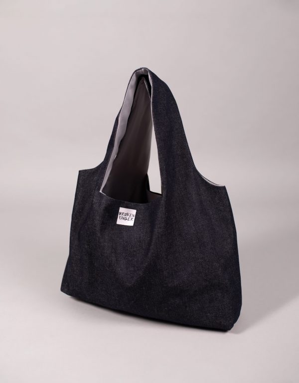 Bolso realizado en grueso denim índigo japonés. Con dos asas gruesas para llevar al hombro o d mano, modelo compacto pero de gran capacidad. Completamente forrado y con cierre magnético.